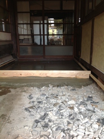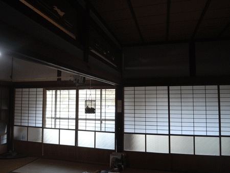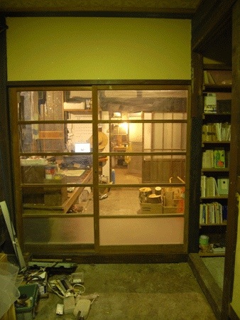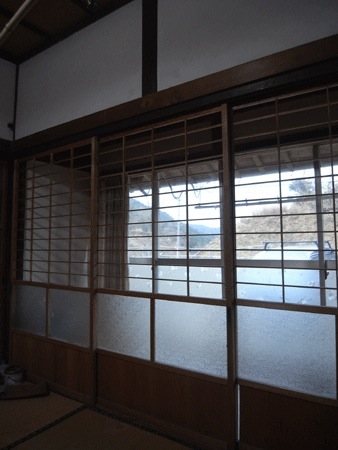 玄関と薪ストーブの部屋の間に ガラス戸を入れました。