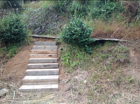 問題は、階段横の土を固めたところが、雨で流れないかどうか、ですね。