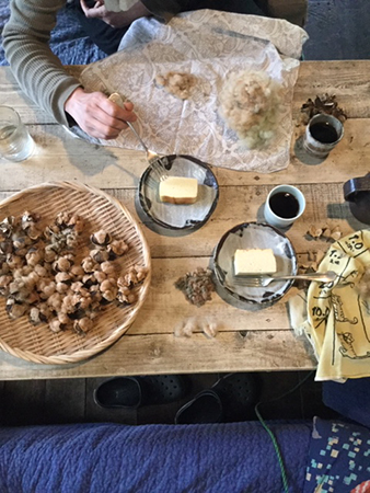 種にくっついている綿を手でほぐして種を取り出していきます。