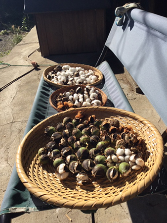 少しでも開いたら刈り取って日向に置いてさらに開かせた。