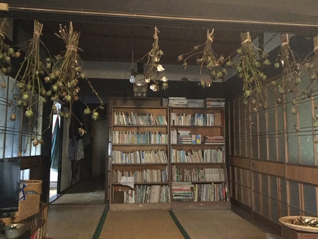刈り取って薪ストーブ焚いてる暖かい部屋に吊るしてみることにした。